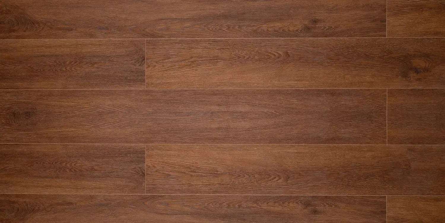 Синхронный рельеф совпадает с рисунком декора — поверхность неотличима от натурального паркета